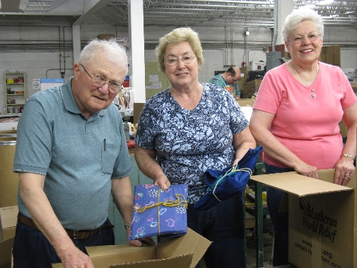 During our three-day journey we spent one day in the Material Resources Center packaging school kits, hygiene kits, baby layettes, and health kits for distribution to areas of impoverishment and turmoil. A second day was spent at SERRV, a nonprofit organization with a mission to eradicate poverty wherever it resides by providing opportunity and support to artisans and farmers worldwide. We inspected and packaged several different fair trade crafts items for sales in the United States.